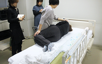 車イス・ベッド上でのシャンプーなど、お客様に負担のない方法を勉強します。